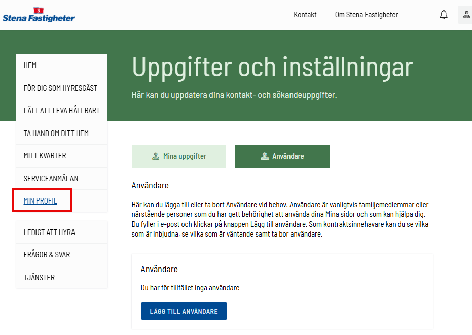 1. Logga in på Mina sidor och gå till Min profil, välj Mina uppgifter.